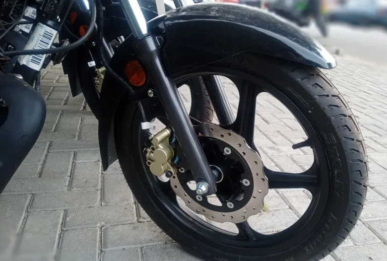 - Freios: Tambor nas duas rodas (ou disco na dianteira na versão ESD), com sistema CBS.
